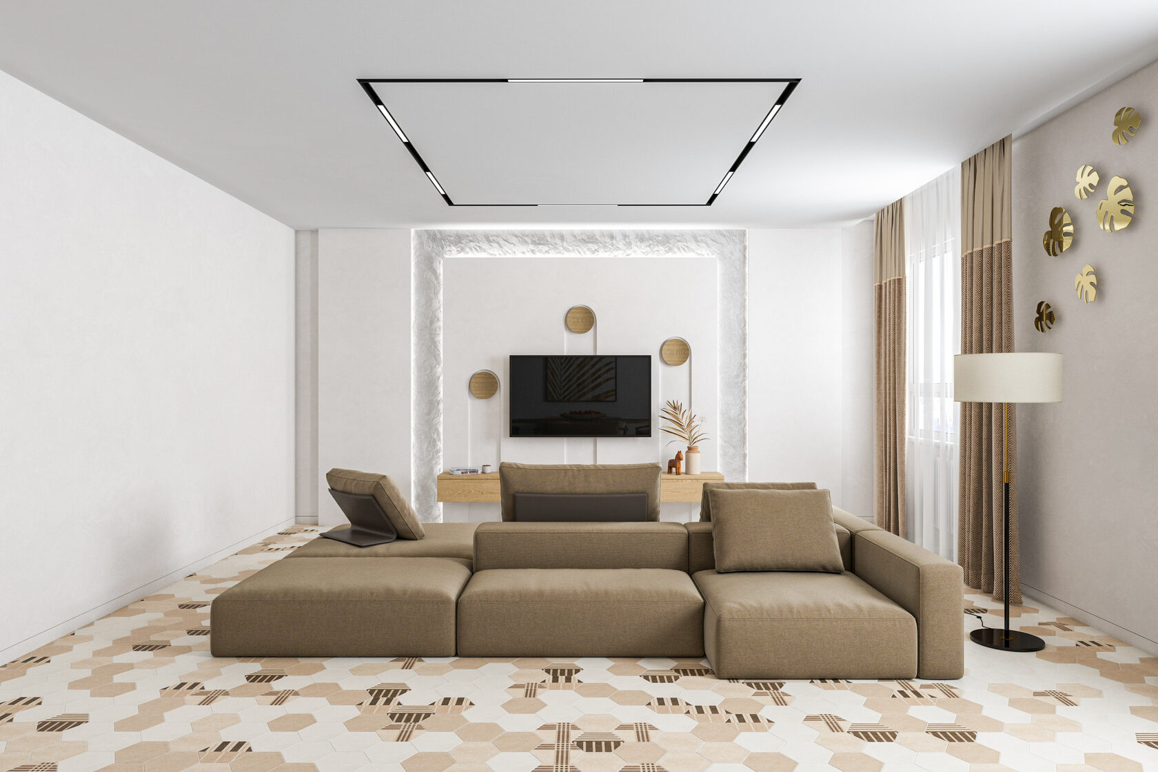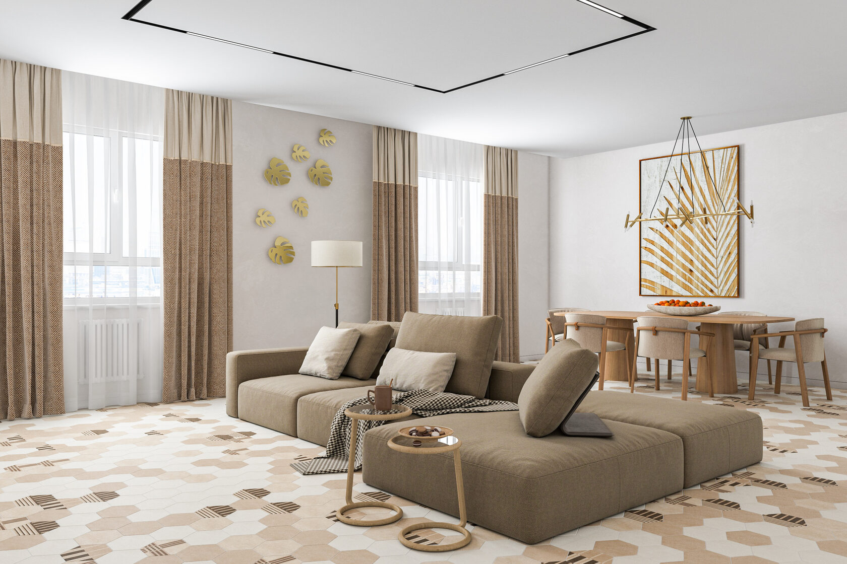В холле расположился шкаф, комод и два зеркала. Проект включает визуализации помещений и комплект чертежей для ремонта: обмерный и монтажный планы, зонирование, план мебели, маршрутов передвижения, планы и потолков, развертки плитки в санузлах, план размещения электрических розеток, план размещения осветительных приборов и выключателей. Благодаря дизайн-проекту удалось быстро отремонтировать квартиру 125 кв м.