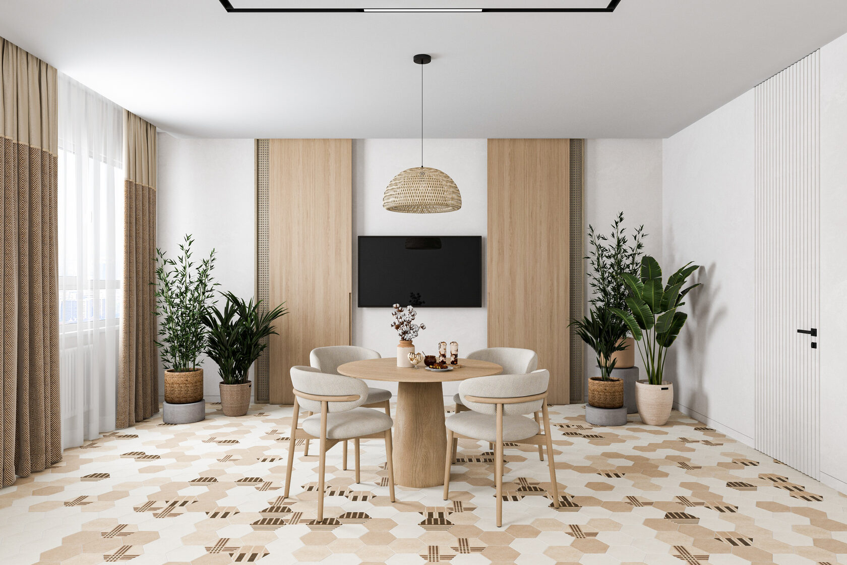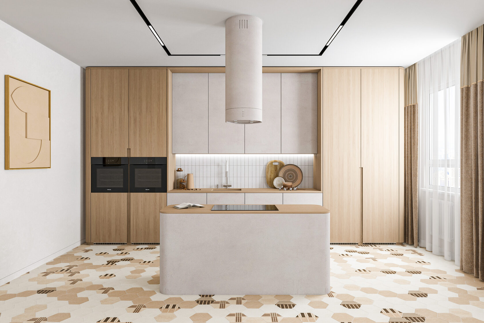 Вас приветствует команда Студии Новый дизайн! Мы работаем над новым проектом в стиле джапанди и уже готовы показать первое помещение - это кухня. Заходите на наш сайт и в скором времени вы увидите всю квартиру. А пока расскажем о концепции.