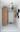Ванная комната оснащена квадратной душевой кабиной без поддона. Стеклянные стенки и дверки крепятся прямо на пол. В реализации ремонта таких мокрых зон учитывается уровень пола. Он должен быть ниже пола в других помещениях, что указывается в чертежах. Напольная плитка переходит на стену в нише. На тумбе размещается круглая раковина. Композицию дополняют круглое зеркало и светильники. Интересным решением стала подвесная стиральная машина. Под ней мы разместили открытую полку.